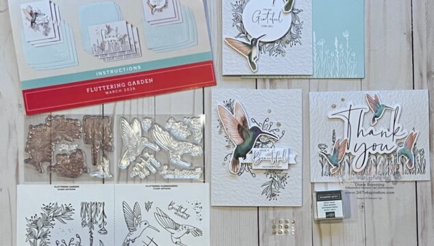 I finally had a chance to work on the March Paper Pumpkin kit. I love the soft gray and white look of the cards with the bright colors of the hummingbirds. These cards are really lovely. To get the Paper Pumpkin kit shipped to you automatically, you can click the Shop button on the right, select the Paper Pumpkin link, and enter your name, address and credit card. If you sign up prior to the 10th of the month, you will get that month’s kit. … [Read more...] about March Paper Pumpkin-Fluttering Garden