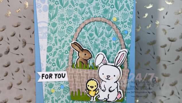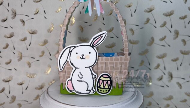 I still have the Easter Joy Suite spread out on my desk. The images in the set are adorable. The pattern paper is so bright and fun. The Easter Basket die set includes this basket, which is just the right size to include a small Easter treat. I die cut two of these baskets and added a box bottom to turn it into a treat holder. I'm so excited with how this little treat holder turned out. It is absolutely adorable. … [Read more...] about Easter Treats