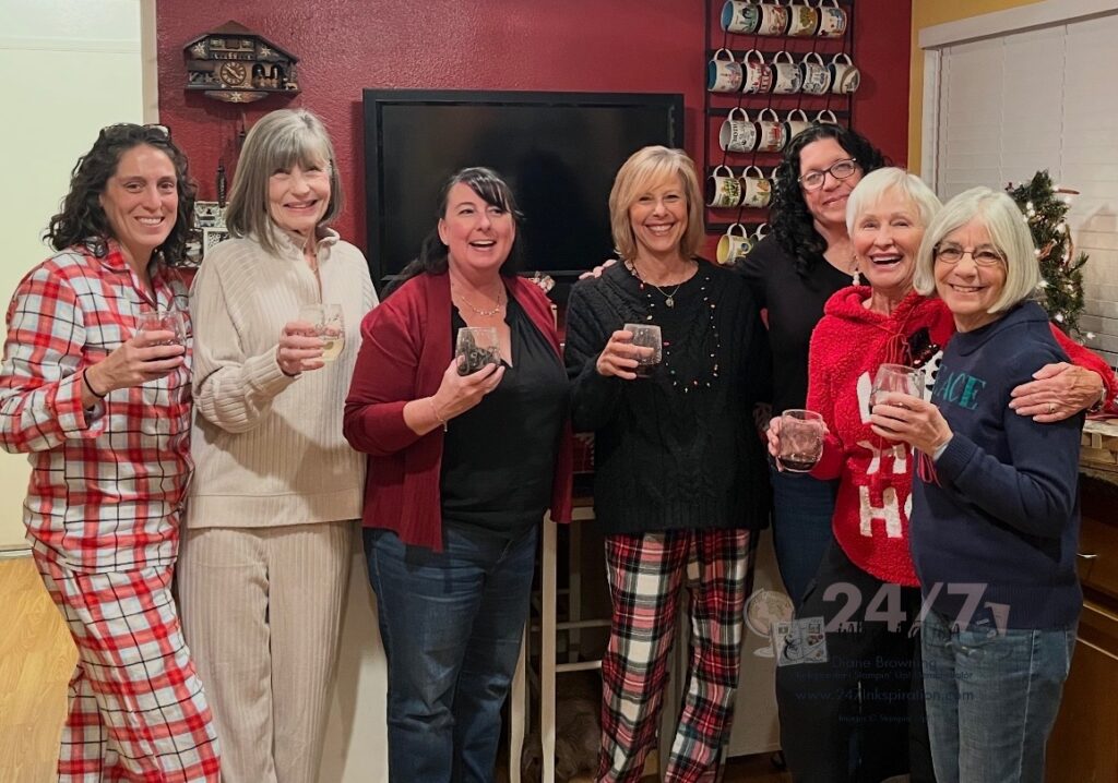 We’ve been friends for around 30 years with monthly dinners for many, many years. These ladies are like sisters. We’ve seen each other through weddings, marriages, divorces, having and raising children, and loosing a spouse. This is a picture of us from a past Christmas party.