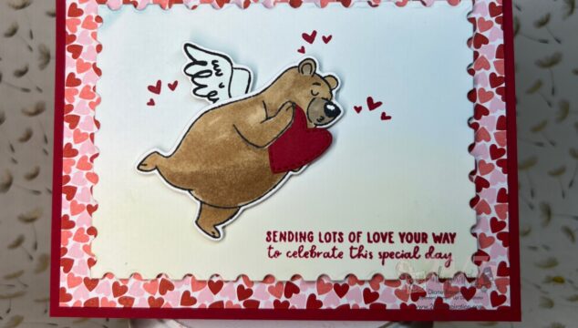 Happy Monday! I'm back today with the Valentine Kisses bundle. This set has a couple different bears that you can use along with a bunch of accessories. Today, I made the bear into a cupid. I used a blending brush to add blue ink to the background for sky and green for the grass. I love this adorable bear set. There are so many options between all the different stamps and dies. I can't wait to make a few more projects with this set. … [Read more...] about Sending Love