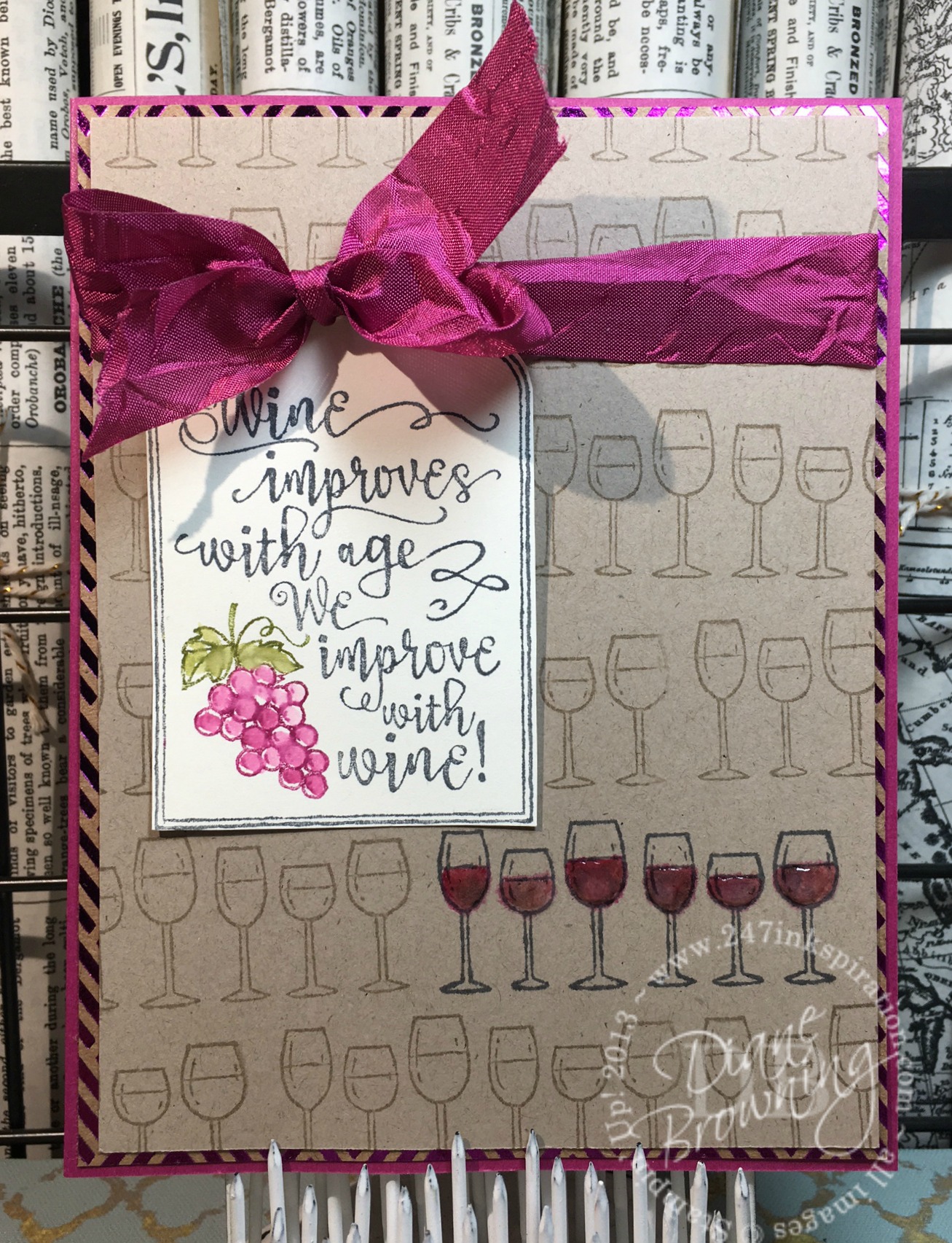 I'm definitely a "glass is half full" kind of person. I'm always looking for the good in others and the positive in any situation. I prefer to have a positive outlook on life and be happy when good things happen. I strongly feel that if you look for the negative, that is exactly what you're going to find. And I like wine. So, it was no surprise that I purchased the Half Full stamp set. One of the sentiments in the set, "may your glass … [Read more...] about Half Full