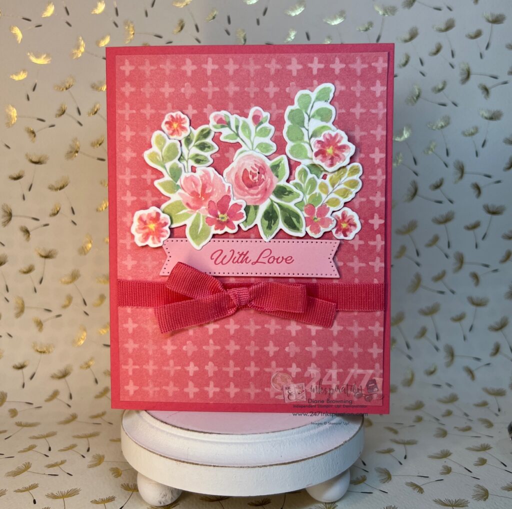 Strawberry Slush & Pretty in Pink are color buddies, and adding the washi tape to white card stock really makes it stand out! With Love, indeed.