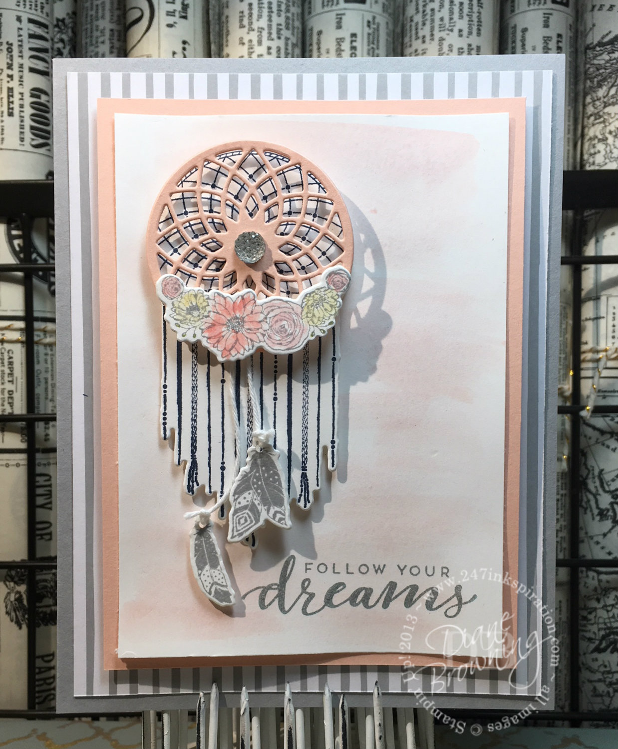 Today, I'm back with the Follow Your Dreams stamp set and coordinating dies. It's kind of funny how you see something and think, that's not my style. But when you start creating with it, you really end up liking it quite a bit. I picked this set because I knew my daughter would like it. In fact, she has a dreamcatcher that she made hanging in her room. She loves that hippie retro vibe. Today's card is all about the layers and more … [Read more...] about Dreamcatcher