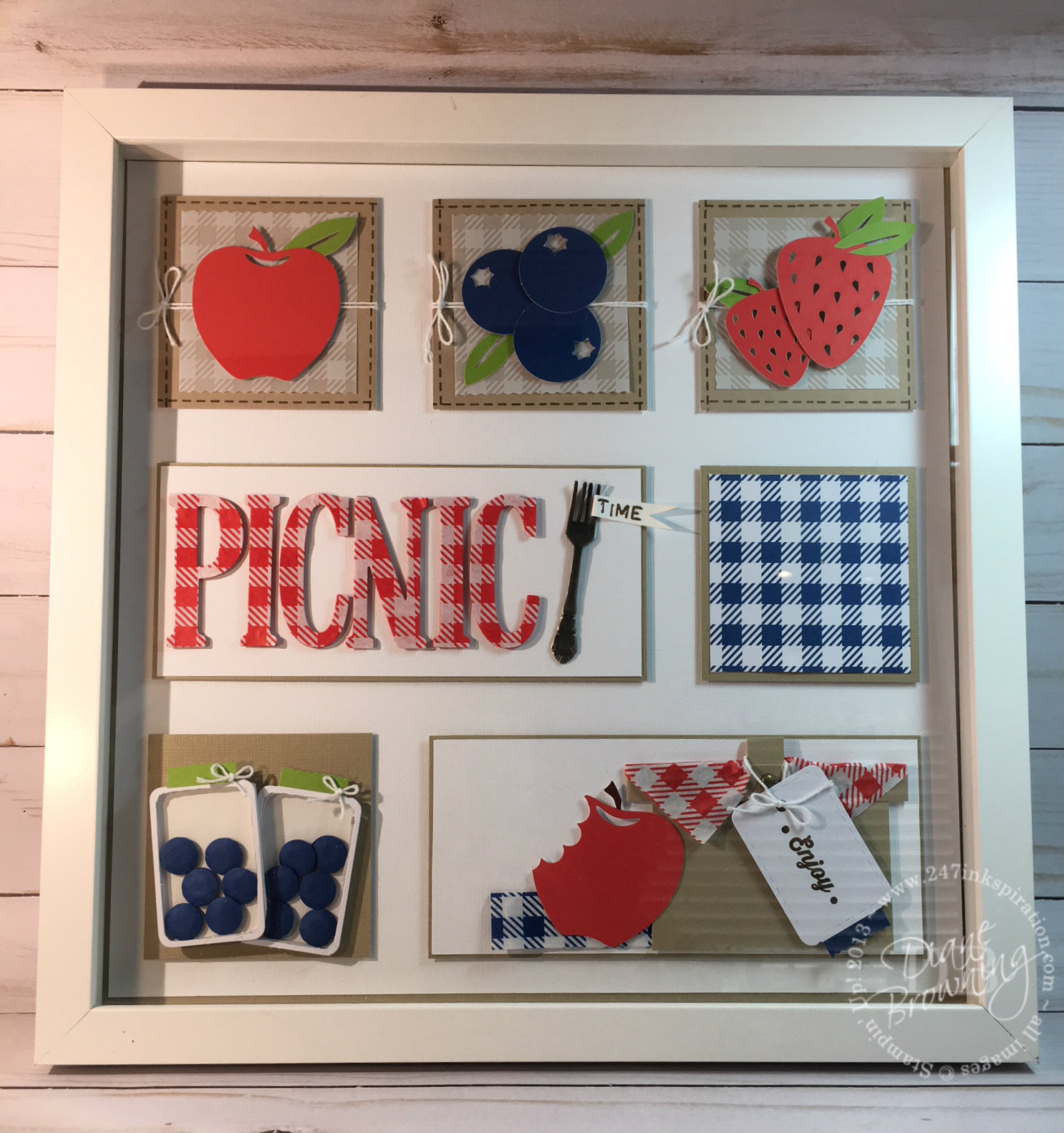 I love the adorable little picnic baskets that came in the July Paper Pumpkin kit. But I don't really have a lot of room to store 3D projects like that in my studio. Seriously, I would be overrun if I kept one of everything. Still, I really wanted to enjoy the look of the picnic basket and knew a Sampler would be perfect to display something like this. I took most of the various pieces from the July kit to make my 12x12 Sampler. I used the … [Read more...] about July Paper Pumpkin Sampler