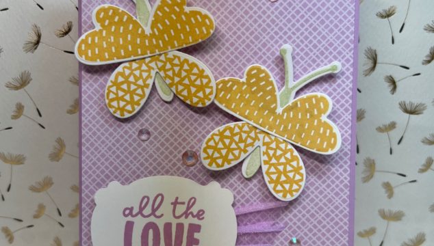 Last week, I shared some bright butterflies. One question I got was, do I need this Suite if I'm not into the bold colors? Well, I'll leave that decision up to you... but here's a much softer option using the same Butterfly Kisses Suite. Oh my goodness, the soft purple and yellow is just so pretty together. This gives a really different look to the stamp set. The pattern paper is from the same pack as the bold stripes. I love that the pack … [Read more...] about A Really Different Look