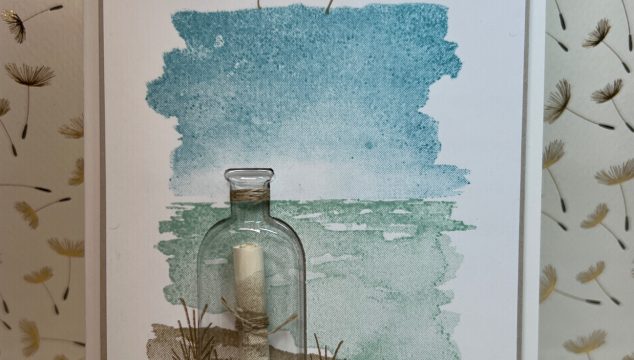 Today's card was inspired by Stampin Up's Paper Pumpkin add for July. I'm really looking forward to seeing what the July kit will look like. Here is our sneak peak for the theme. In the meantime, this is my version of that Paper Pumpkin ad. My card uses the Vintage Bottle Shaker dome. And I've added a rolled up message inside the dome. The message is tied with our linen thread. I don't know if the Paper Pumpkin kit will include the … [Read more...] about Message In A Bottle