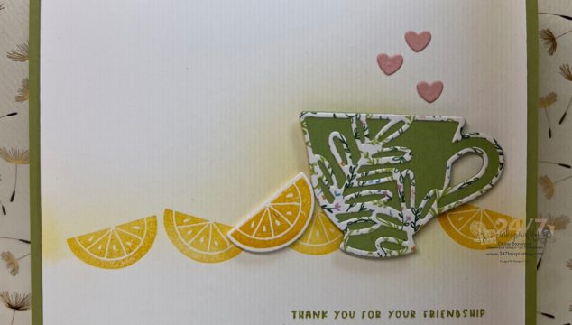 Happy Friday! In going back through my recent projects, I found a few from the Tea Boutique that I hadn't shared yet. This is one of my favorites. The soft yellow background was made using our blending brushes to add just a little bit of yellow ink. I love how this softens the white background. If you haven't gotten your own Tea Boutique Suite, now is your chance to get it and get a Sale-a-bration freebie too. For every $50 you spend, … [Read more...] about Cup of Friendship